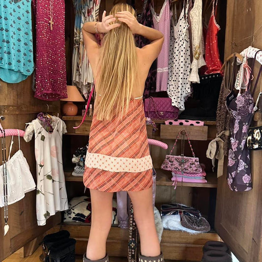 Vintage 90’s Italian pink mesh and lace pixie dress