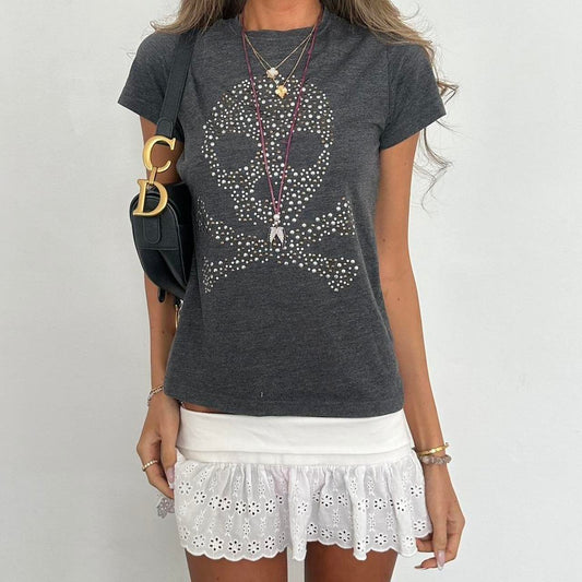Vintage 00s grey scull and crossbones pattern top