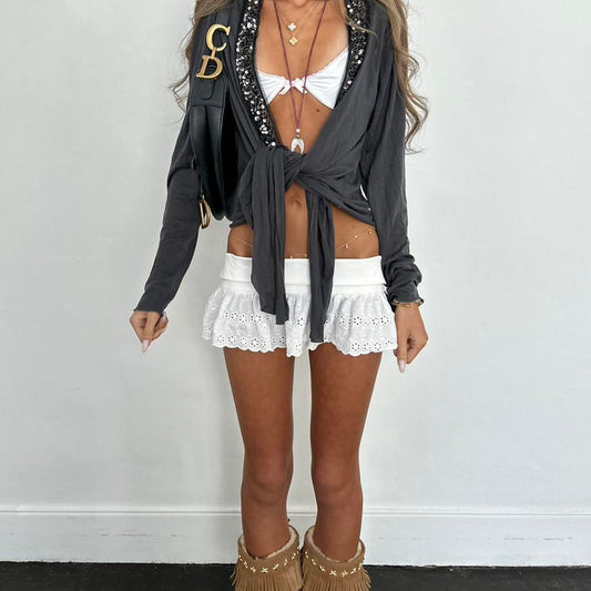 Vintage 2000s grey sequin tie up long sleeve top