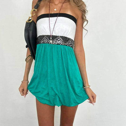 Vintage 00s strapless turquoise boho mini dress