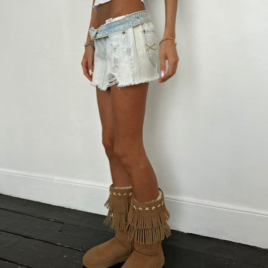 Vintage 00’s Ralph Lauren skull and crossbones patch denim shorts