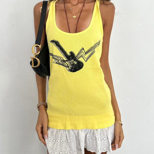 Vintage 2000s rockstar guitar yellow cami top
