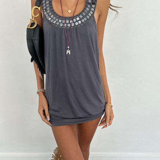 Vintage silver grey sparkly mini tank dress