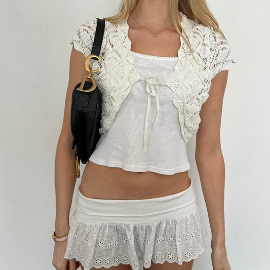 Vintage 90’s white tie up crochet cardigan top