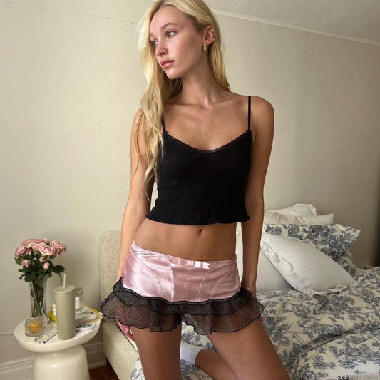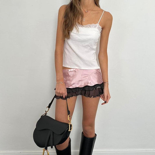Vintage early 2000s pink and black lace micro mini skirt πΈπ©·πͺ½