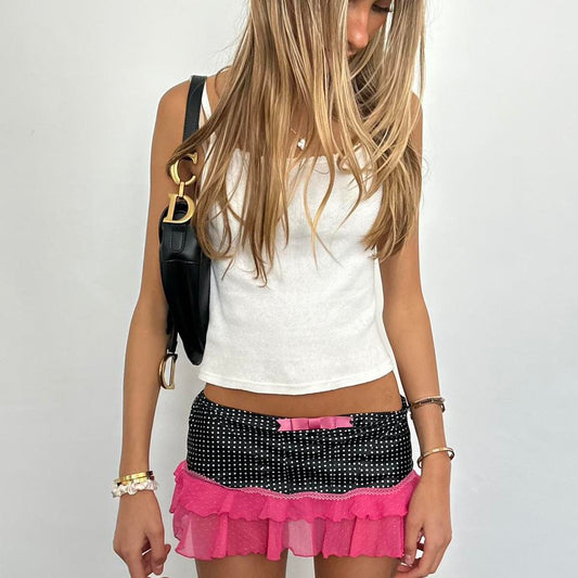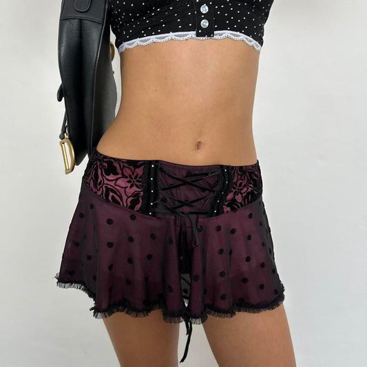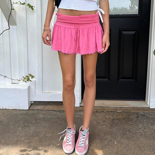Vintage early 2000s pink pinstripe lace mini skirt 🩷