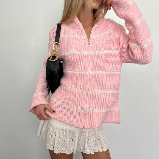 Vintage pink and white long sleeve cropped relaxed fit thin hoodie