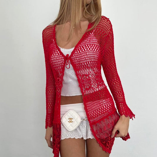Vintage red delicate layering cardigan