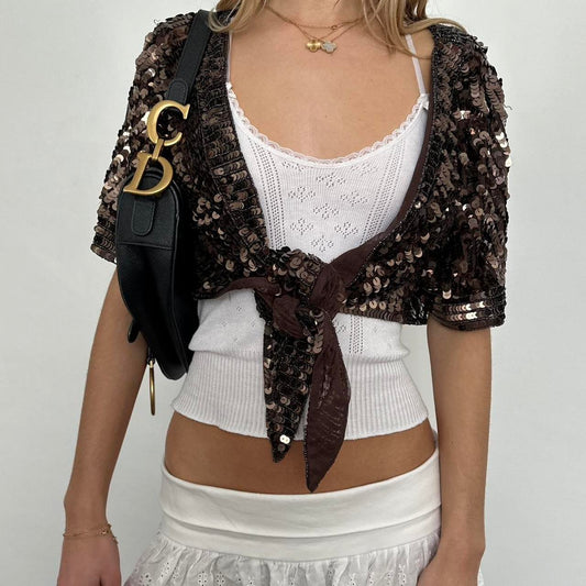 Vintage sequin cropped layering cardigan top