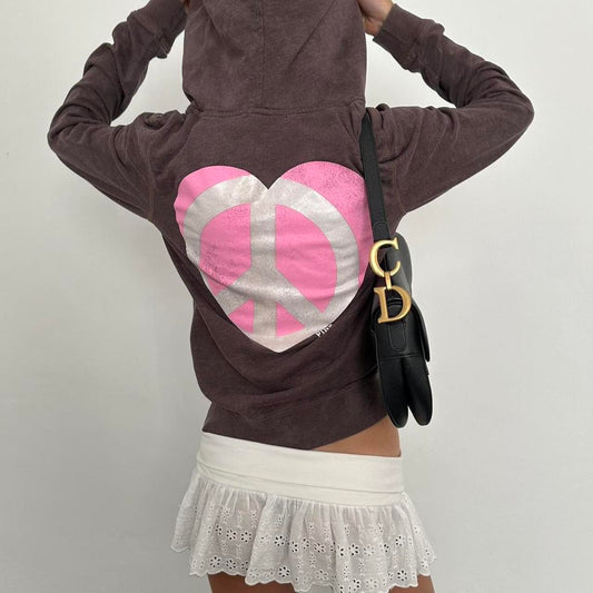 Vintage Victoria’s Secret brown and pink Peace sign & hearts hoodie