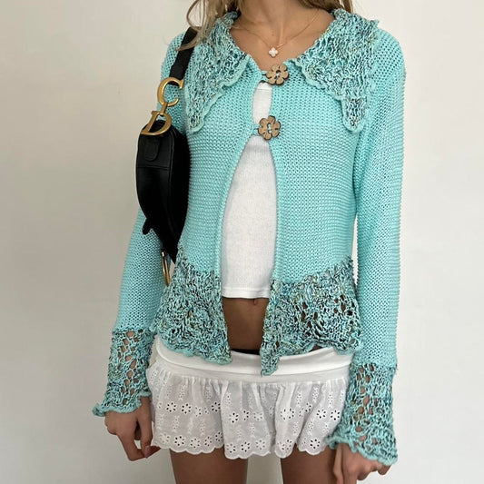 Vintage 90’s aqua blue lace trim cardigan top