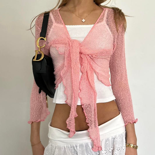 Vintage 90’s pink lace trim cardigan top