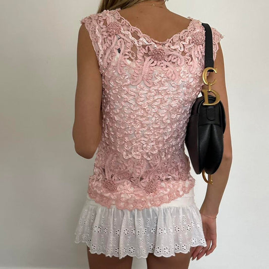 Sold outVintage pink button crochet top