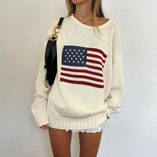 Vintage 90s Ralph Lauren white American flag knitted sweater