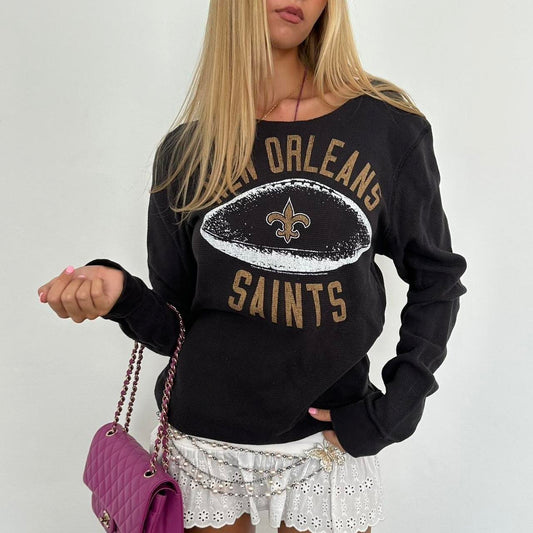 Vintage 2000’s black ‘New Orleans Saints’ off the shoulder waffle long sleeve top