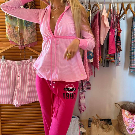 Vintage 2000’s Victoria’s Secret colourful stripe folded waist sweatpants