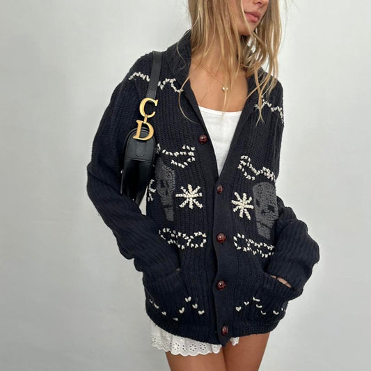 Vintage 90’s knitted skull graphic cardigan