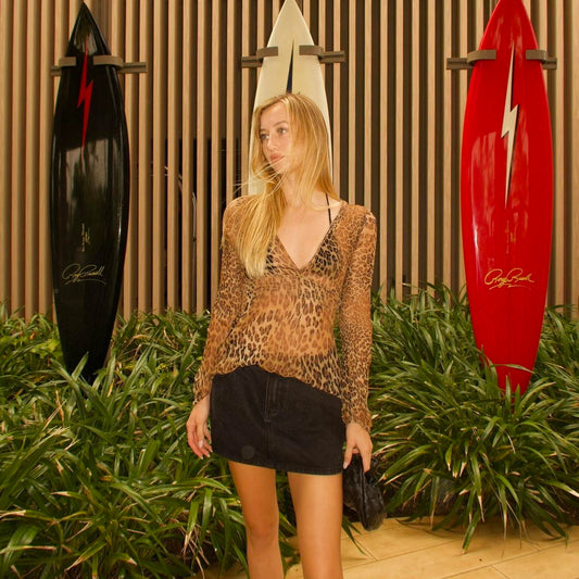 Vintage 90’s leopard print mesh tie up top