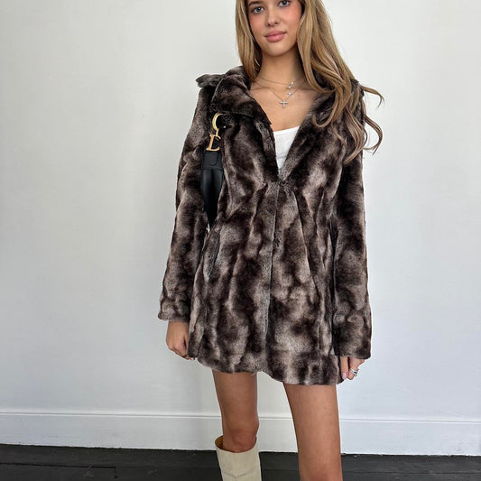Vintage 2000’s brown & grey faux fur jacket