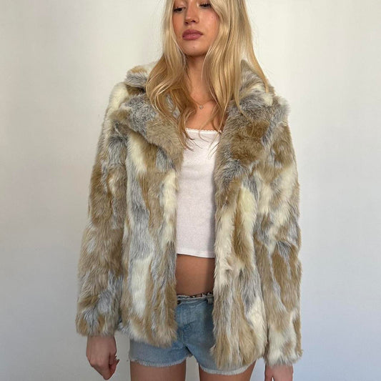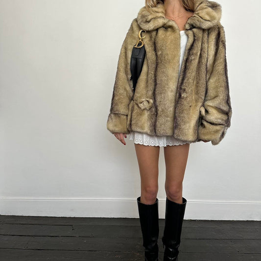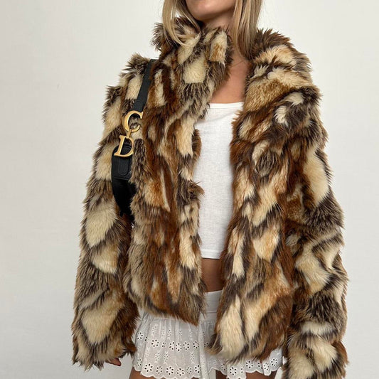 Vintage 2000’s brown & tan faux fur jacket