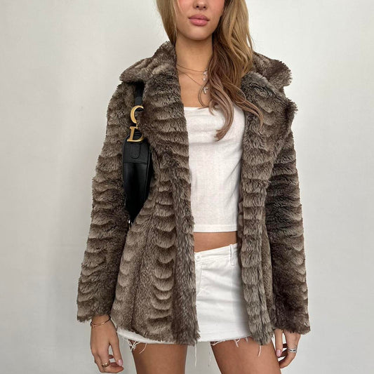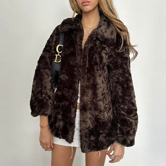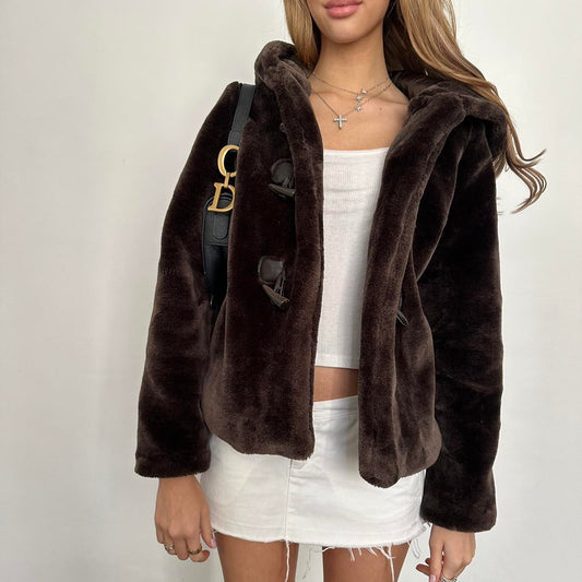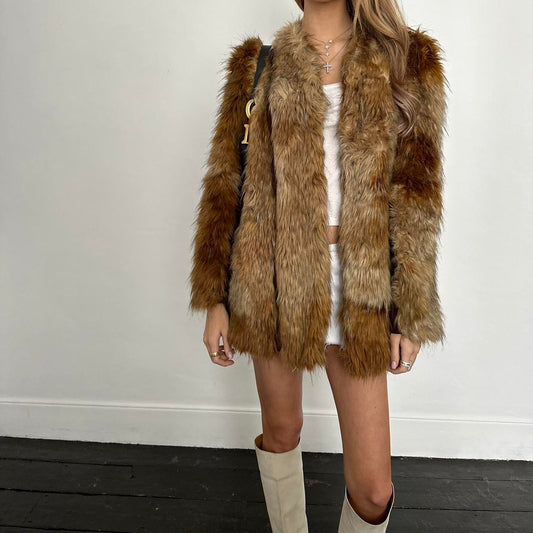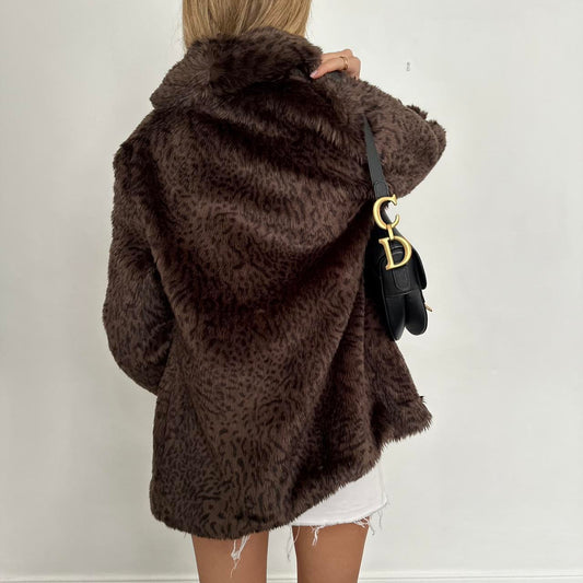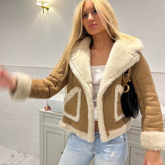 Vintage 2000’s brown suede leather & white faux fur jacket