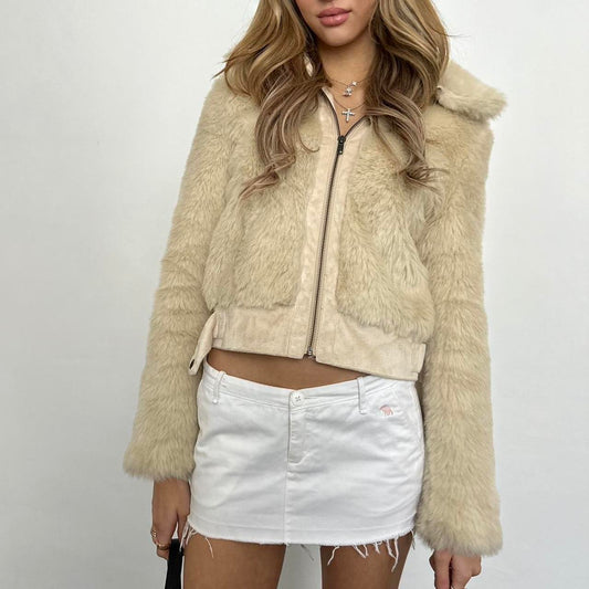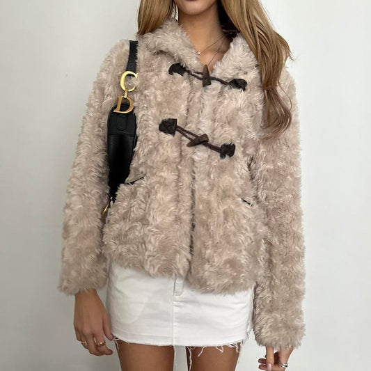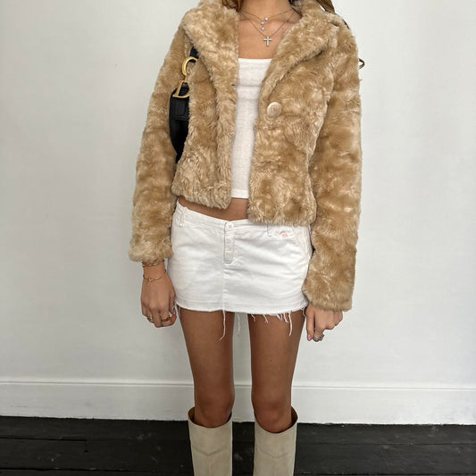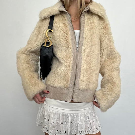 Vintage 2000’s cream faux fur & knit sleeves jacket