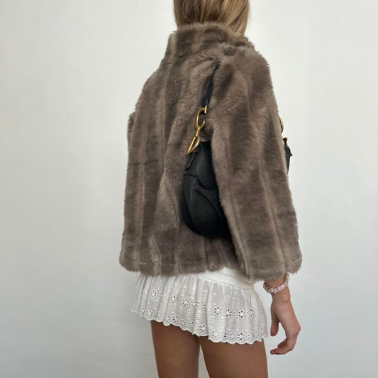 Vintage 2000’s grey/brown hooded faux fur jacket
