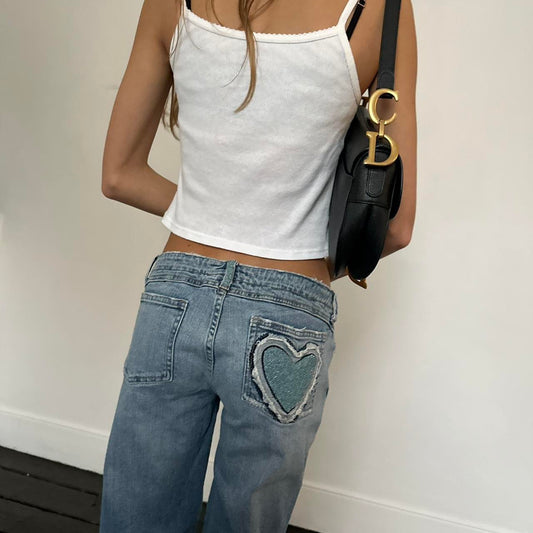 Vintage 2000’s heart beaded blue jeans