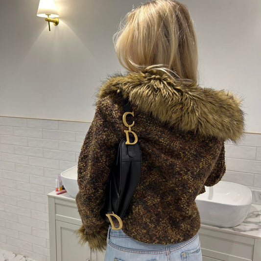 Vintage 2000’s tweed & faux fur jacket