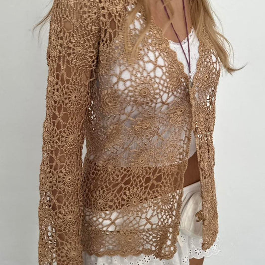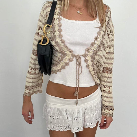 Vintage 90’s beautiful flower crochet tie up cardigan