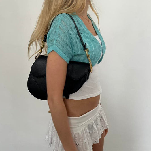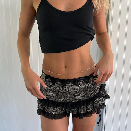 Vintage 90’s blue & brown polka dot ruffle mini skirt