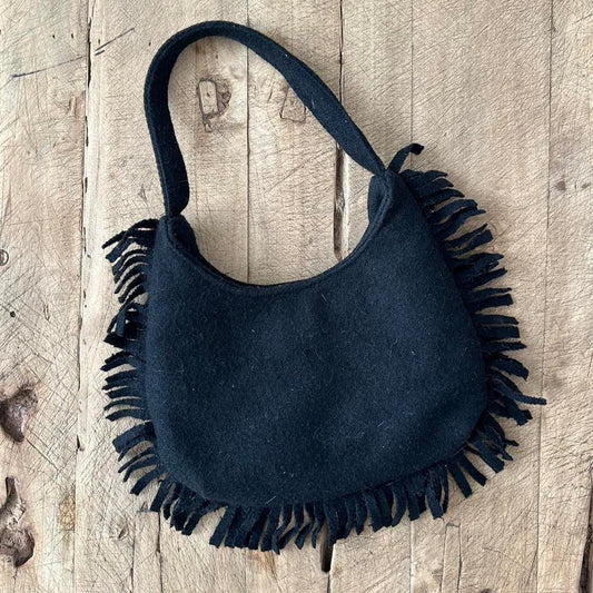 Vintage 90’s paisley black fringe purse