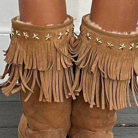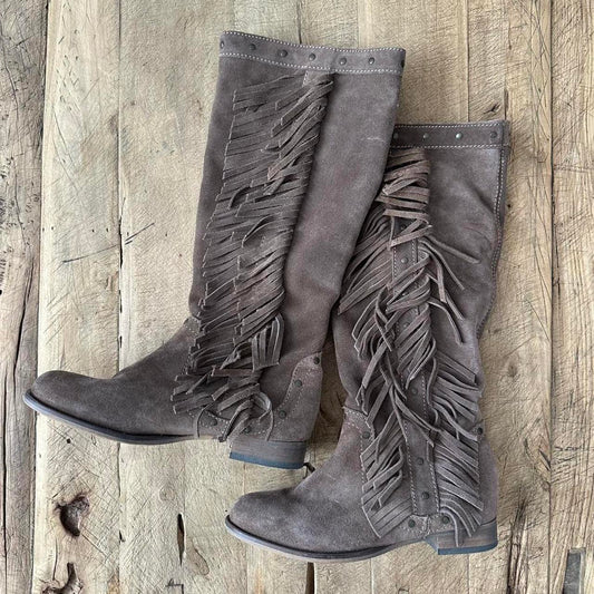 Vintage studded suede fringe boots