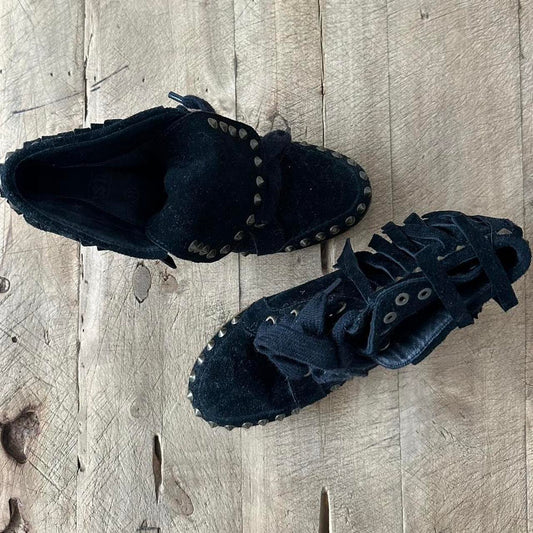 Vintage black suede fringe ankle boots