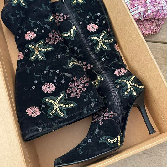 Vintage 90’s Emilio Luca sequin embroidered heel boots