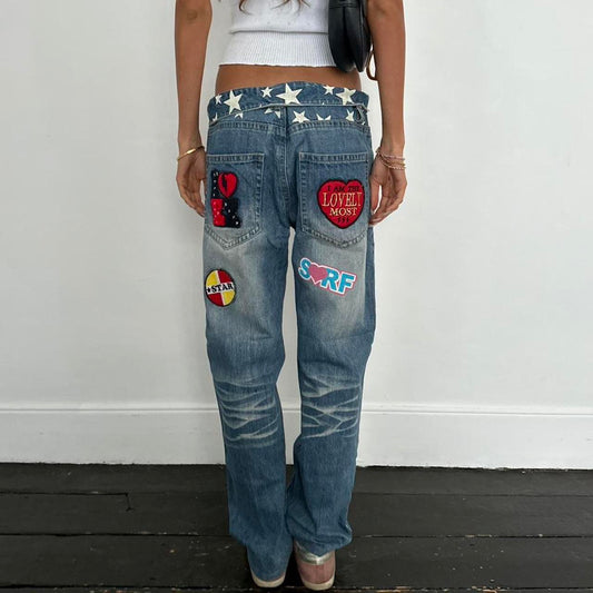 Vintage 2000’s ‘I love surf’ painting low rise jeans