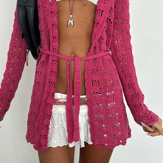 Vintage dark pink crochet tie up layering top
