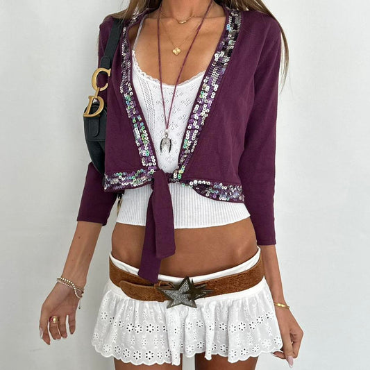 Vintage 00s purple sequin tie up top