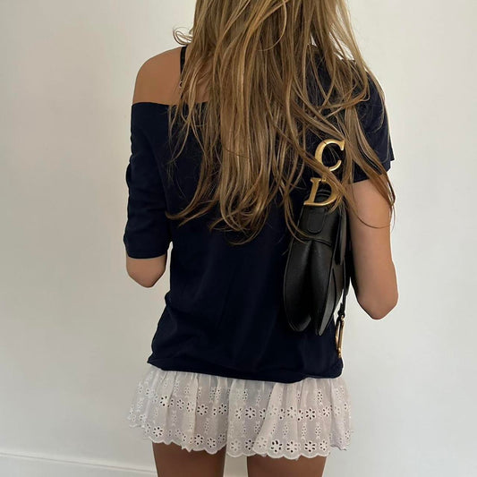 Vintage Ralph Lauren preppy grey cropped off shoulder top