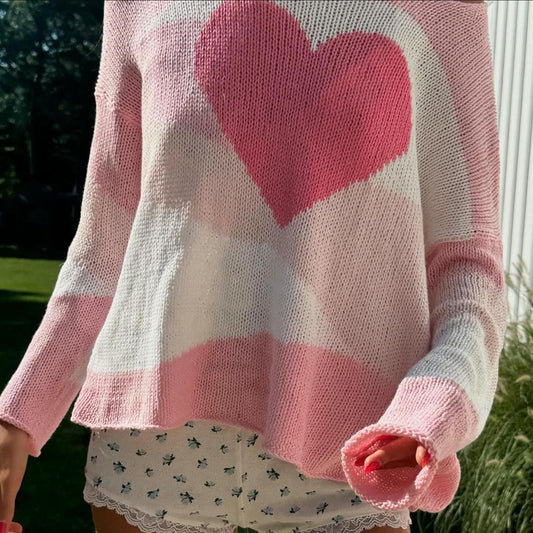 Vintage 2000’s pink heart knit sweater
