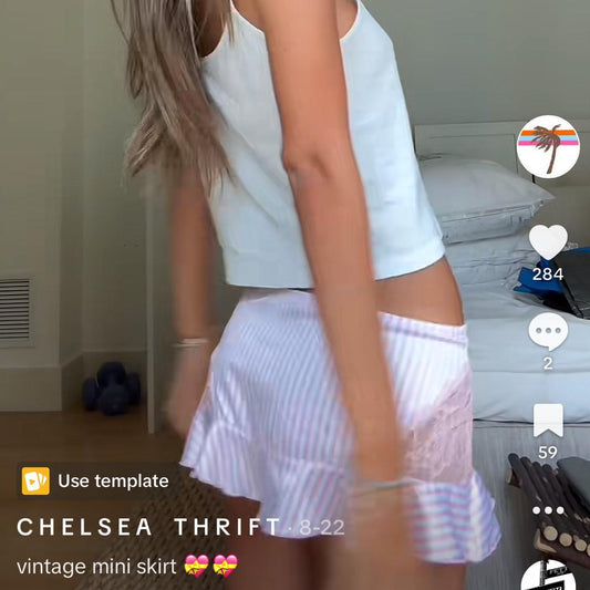 Vintage early 2000s pink pinstripe lace mini skirt