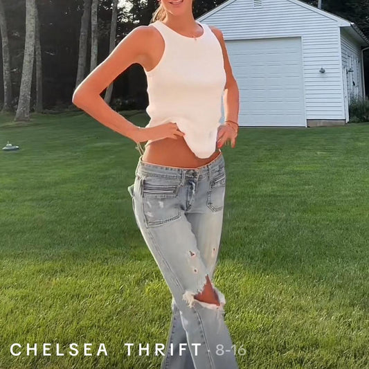 Vintage 90’s beaded low waist blue distressed jeans