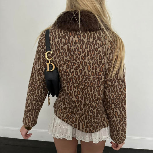 Vintage 90’s faux fur leopard cardigan