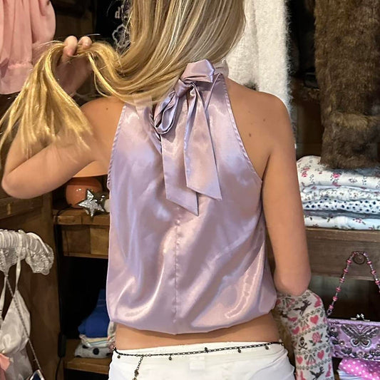Vintage silky purple ribbon top