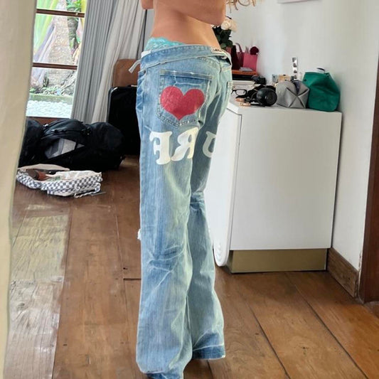 Vintage Abercrombie & Fitch blue distressed bootcut jeans