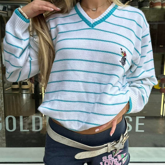 Vintage Ralph Lauren pink and navy long sleeve polo top