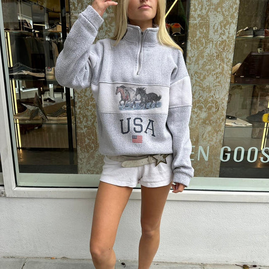 Vintage 2000βs horse USA πΊπΈ quarter zip fleece sweater