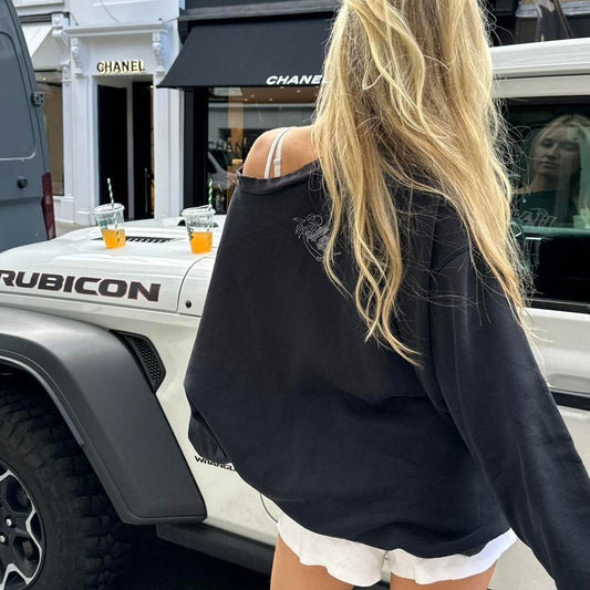 Vintage 90βs Harley Davidson black off the shoulder sweatshirt