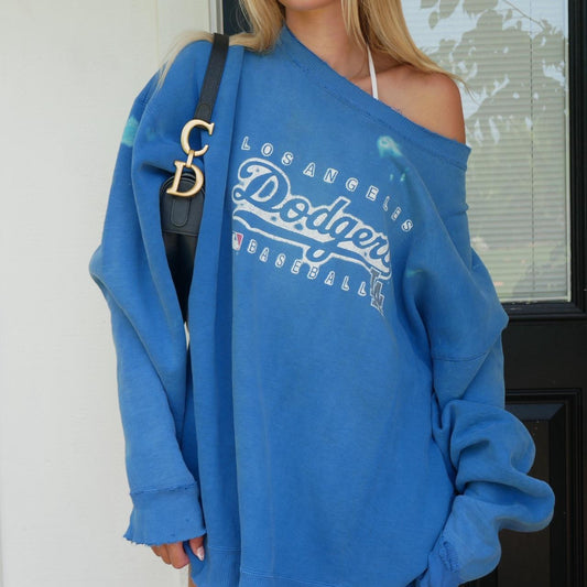 Vintage Dodgers blue off the shoulder sweatshirt distressed style