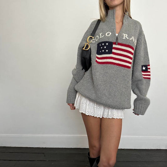 Vintage Ralph Lauren preppy grey cropped off shoulder top
